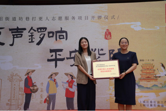 当宋韵雅乐邂逅清脆锣声,当青春力量碰撞基层治理,一场传统与现代交融的实践篇章在杭州紫阳街道二十三坊徐徐展开。9月26日,紫阳街道“坊巷打更人”志愿服务项目正式启动,我校工程管理学院与街道确立共建关系,校地携手为千年街巷注入治理新活力。