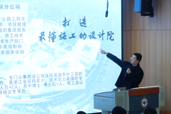 3月31日,浙江省建设职业技术学院全过程咨询产业学院现代学徒制校企育人活动讲座在我校B202报告厅内举行。本次讲座特邀浙江交工集团设计院分公司养护设计部部门助理兼概预算组组长洪彬应邀作“公路工程造价概述与职业启航”主题报告。自工程造价专业的师生代表和金华建校的同学齐聚一堂,共同聆听这场理论与实践深度融合的专业讲座。洪彬系我校2015届优秀校友,原辅导员刘超老师为其颁发校企协同育人导师证书。讲座中,洪彬从专业认知、核心技能、职场准备三个维度展开分享。他介绍了公路工程造价的全过程管理内涵,涵盖投资估算、设计概算、施工图预算、竣工决算等关键环节,并对比了公路造价与房建造价在规模、计价依据、专业特点等方面的差异。他还重点讲解了新建、改扩建、养护三类工程的特点,特别是养护工程“点多面广、边通车边施工”的挑战,以及浙江“阳光造价”体系的创新实践。
